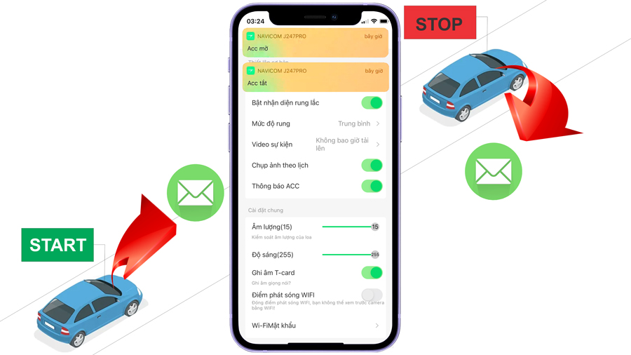 5. CẢNH BÁO XE TẮT/MỞ MÁY