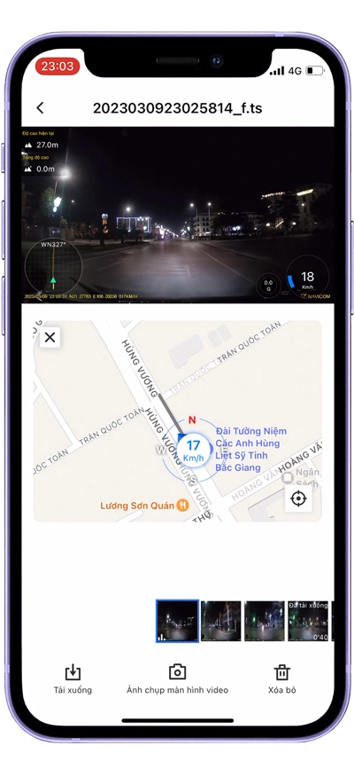 • Thiết bị có hỗ trợ GPS để hiển thị tốc độ xe lên video và lưu lại lộ trình xe đã di chuyển qua đó có thể xem lại lộ trình trên bản đồ google map
