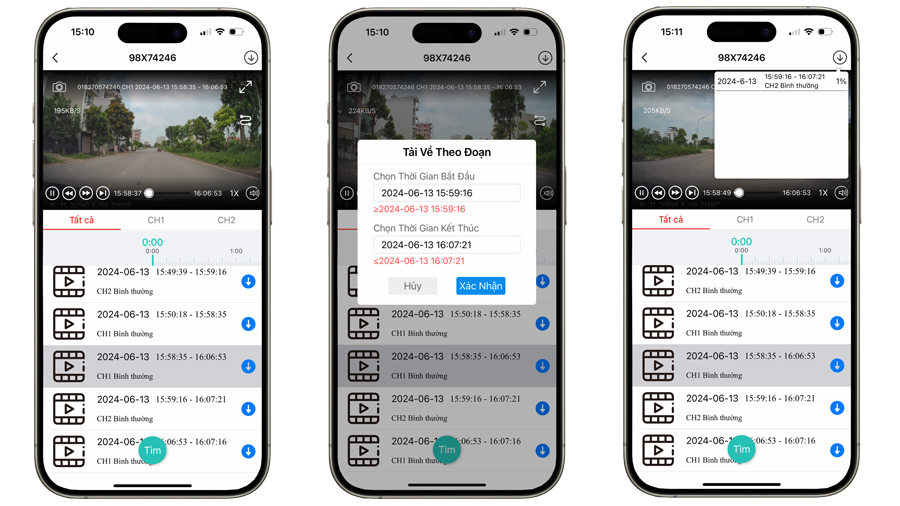 Camera phía trước và camera trong cabin xe ghi hình độ phân giải Full HD 1080P, camera phụ phía sau ghi hình độ phân giải HD 720P.