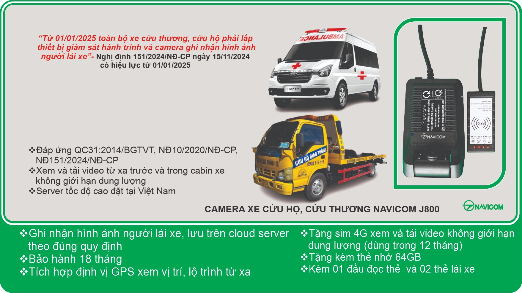 Camera xe cứu hộ Navicom J800 đáp ứng quy định của Luật an toàn giao thông đường bộ 2024