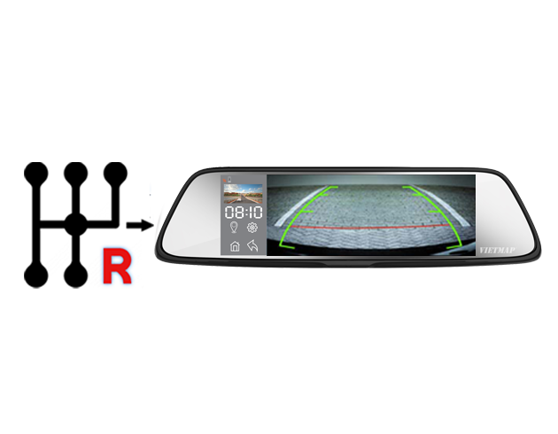 Thiết bị đa chức năng tích hợp gương chiếu hậu cho phép vừa dẫn đường vừa làm camera hành trình thông minh ghi hình cùng lúc trước sau. Camera sau đồng thời hỗ trợ camera lùi, tự động chuyển camera lùi khi trả về số R.
